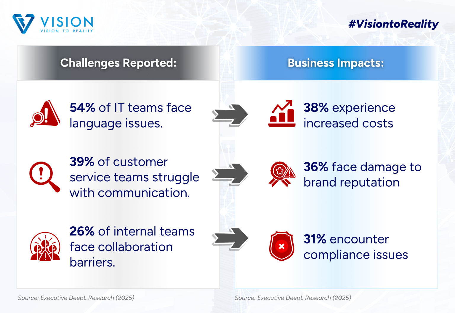 Businesses feel the effects, too. 38% report increased costs, 36% face brand reputation damage, and 31% encounter compliance issues due to language-related challenges. The stakes are high, and the need for solutions is urgent.
