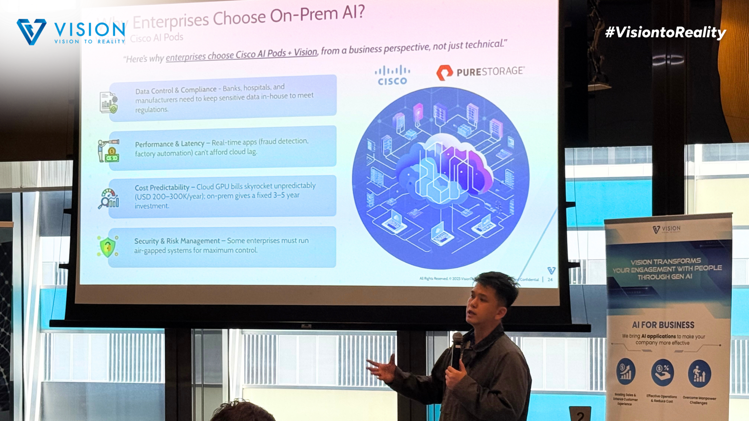 This demonstration highlighted VisionGroup’s collaborative approach with partners like Cisco and Pure Storage — where Vision delivers the intelligence layer, transforming enterprise infrastructure into a scalable AI ecosystem.